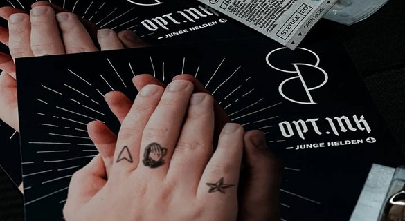 As a part of this partnership, anyone who wishes to become a donor can visit the VEAN Tattoo studios in Germany and get a tattoo with the symbol of Opt.Ink for free. You can choose the appropriate salon on the map: https://junge-helden.org/optink.