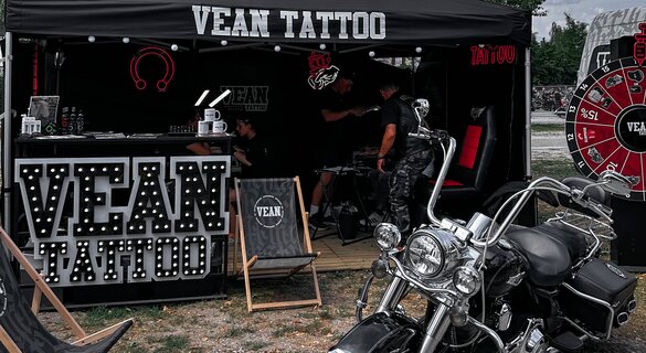 Our VEAN TATTOO booth became a standout attraction in the heart of the festival chaos. Despite the unpredictable weather, our tattoo artists worked non-stop — transforming emotions, music, and memories into inked masterpieces on festival-goers’ skin. Over the course of four days, we brought hundreds of unique tattoo ideas to life — from band symbols to mystical designs and bold skulls.
