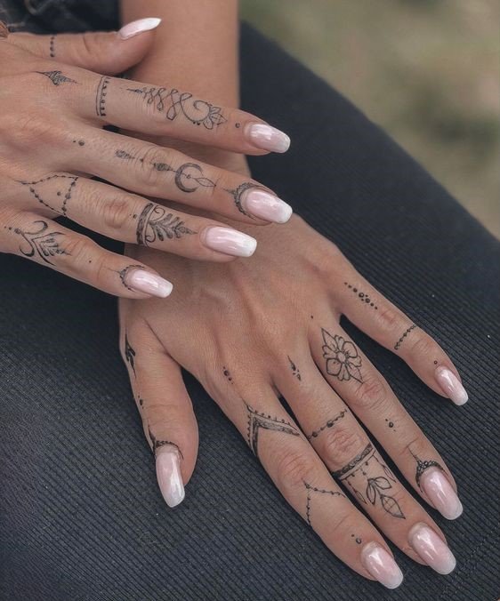 - Ethnic Patterns. Ethnic patterns and symbols on the fingers can carry deep meaning and reference cultural traditions. This is a great idea for those who want to connect their tattoo with their roots or honor a culture.