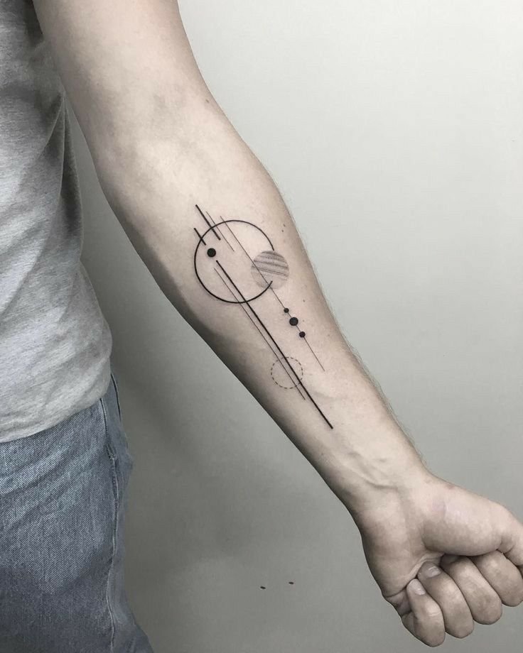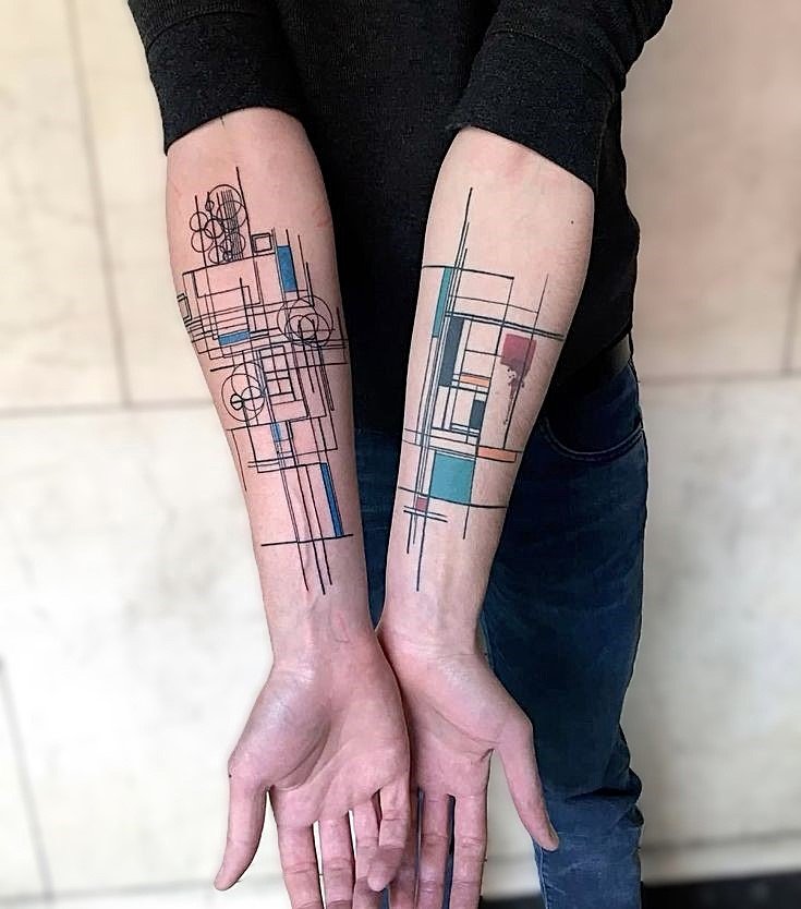 - Abstract Art: Purely geometric patterns such as concentric circles, lines, and dots can create abstract tattoos that focus on form and movement, rather than specific images.