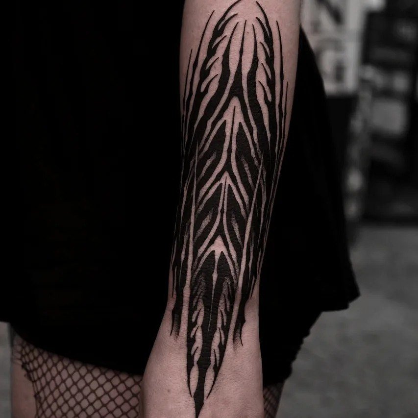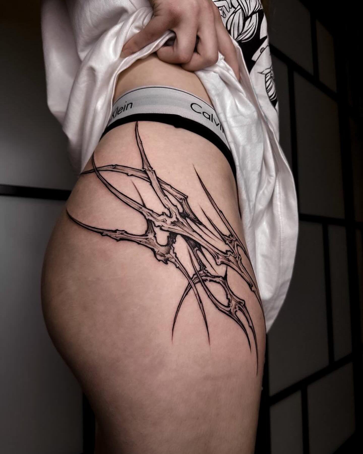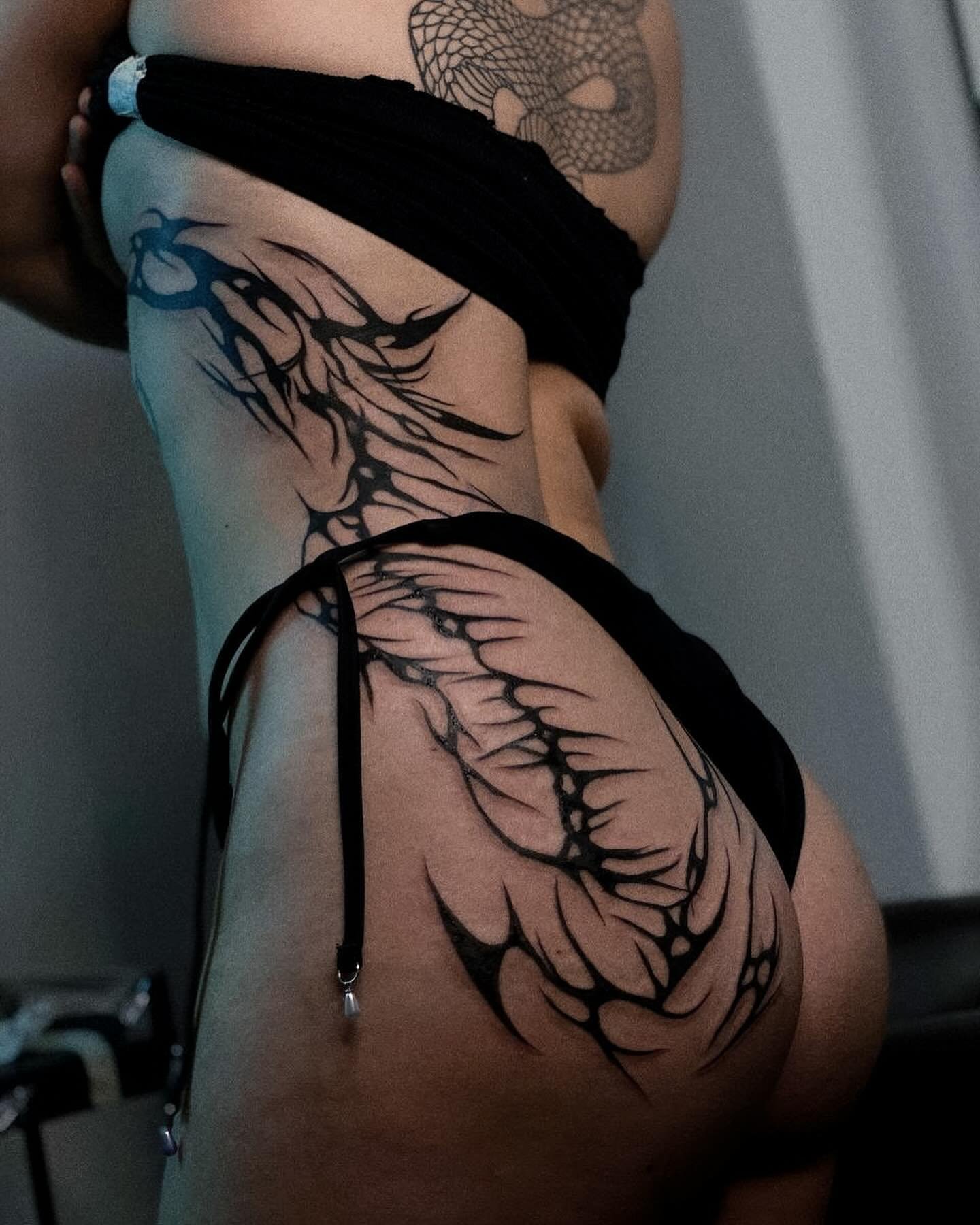 - +Geometric or tribal motifs on the legs or along the sides of the body can effectively highlight body lines and add mystery to the image.