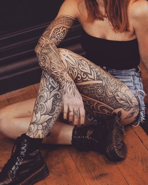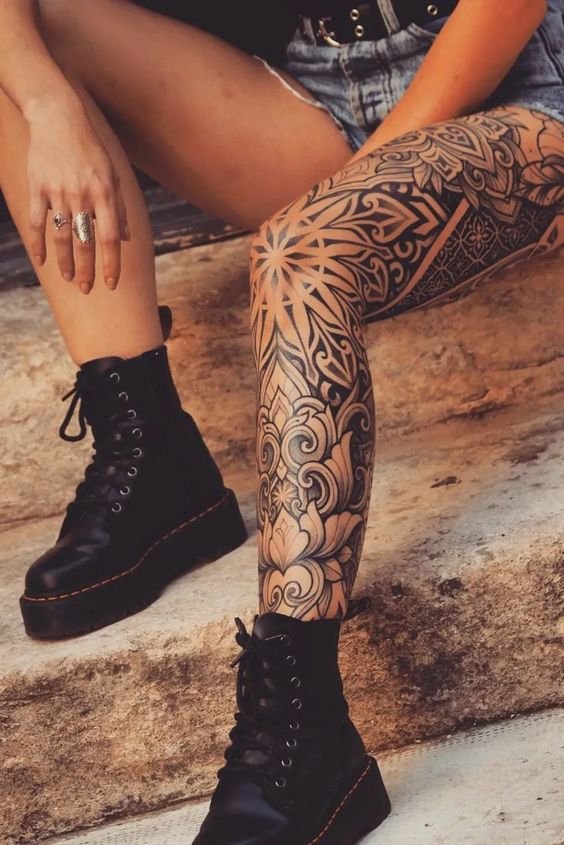 One of the main advantages of a leg sleeve tattoo is its scale.