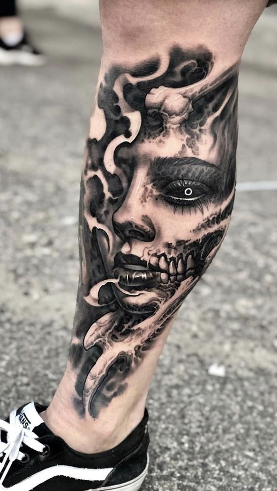 - Realism: This style allows for stunning portraits, landscapes, and other detailed images. Realistic tattoos on the leg can include portraits of loved ones, scenes from movies or books, as well as images of animals.