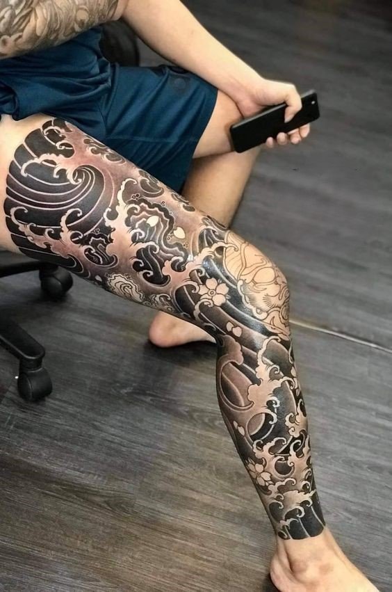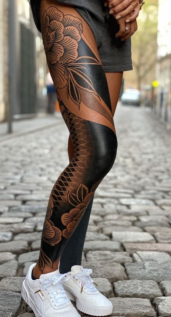 - Japanese Style: Traditional Japanese tattoos, such as depictions of dragons, koi fish, and geishas, look amazing on the leg. A Japanese leg sleeve can become a true work of art, filled with symbolism and deep meaning.