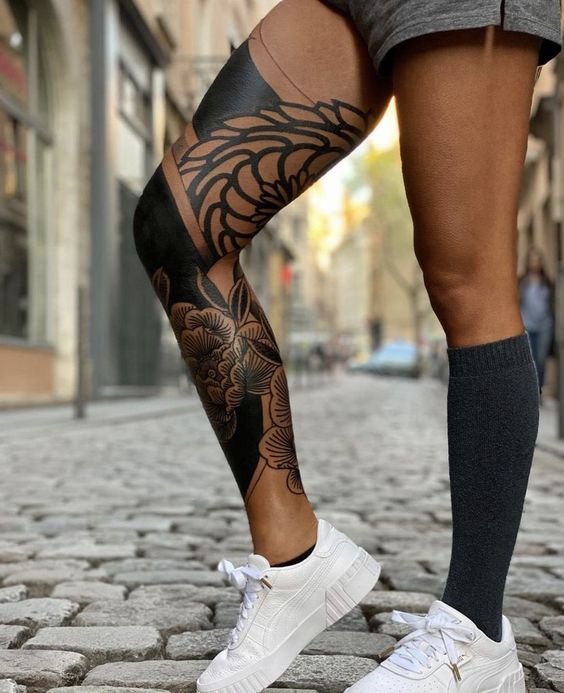 Another advantage is the versatility of this tattoo. A leg sleeve can easily be hidden under clothing, which can be important for those working in more conservative environments. On the other hand, when you want to showcase your tattoo, simply wearing shorts or a skirt will reveal the full extent of the artwork.