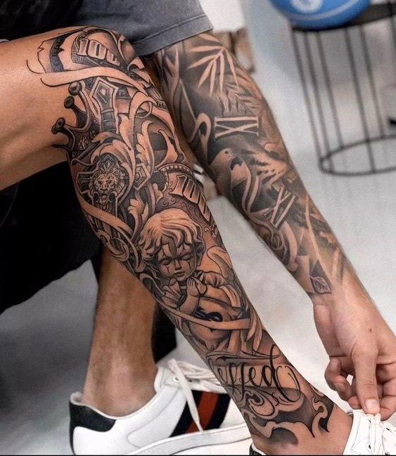 The choice of style and design for a leg sleeve tattoo is a personal decision.