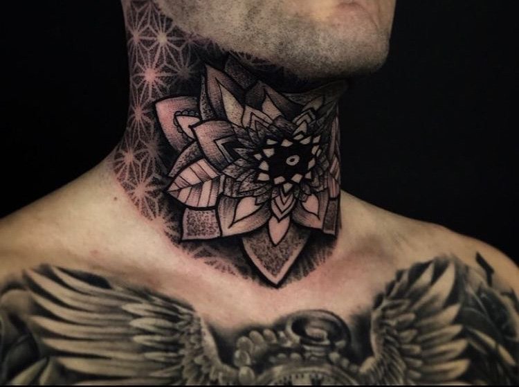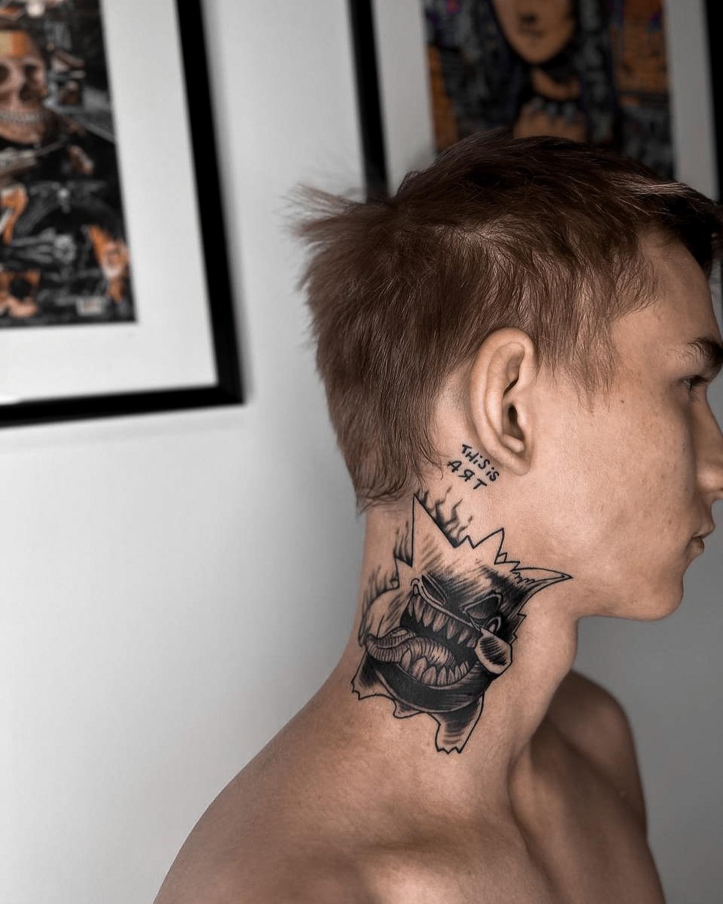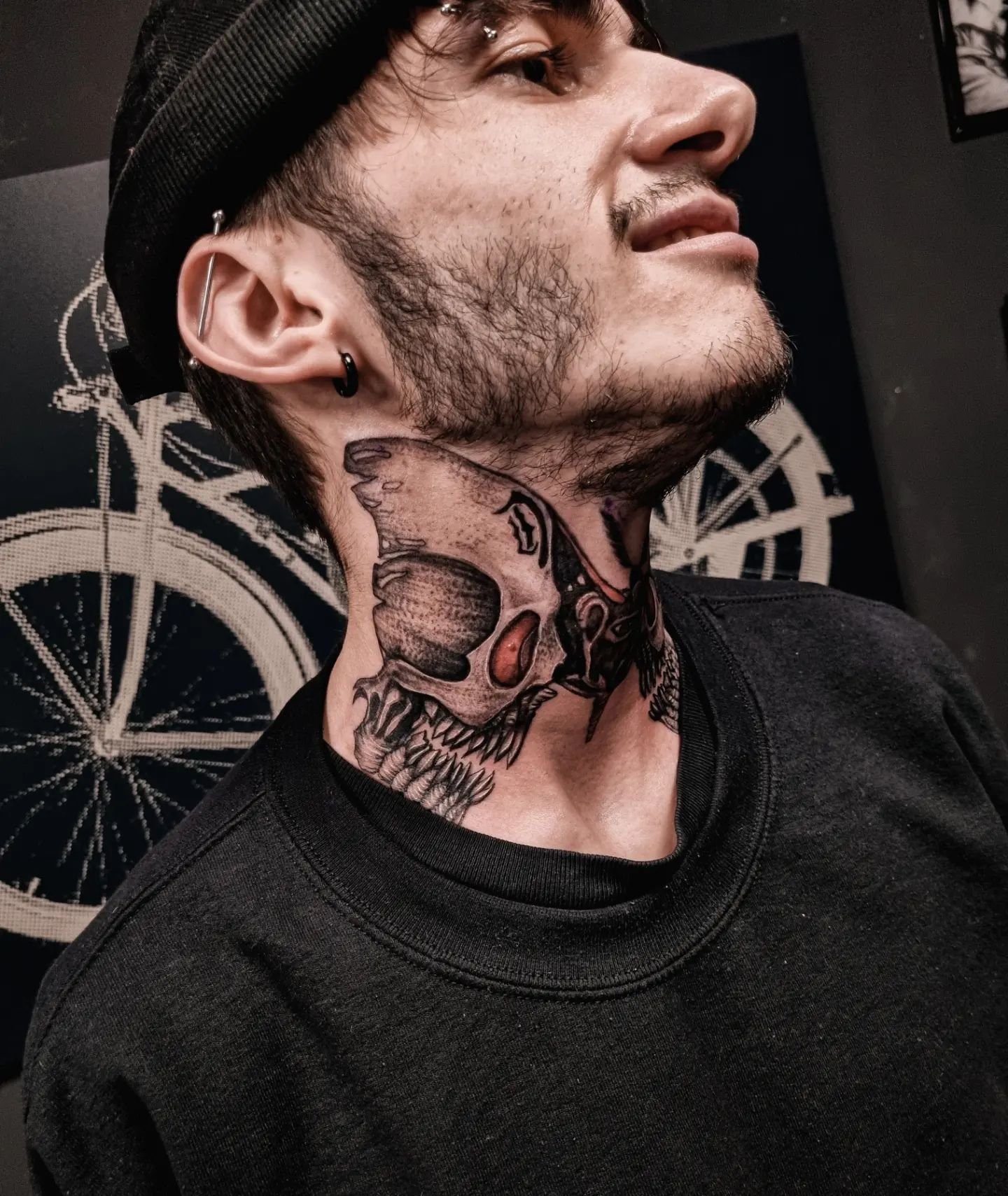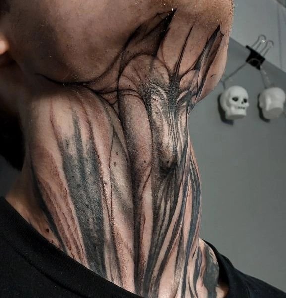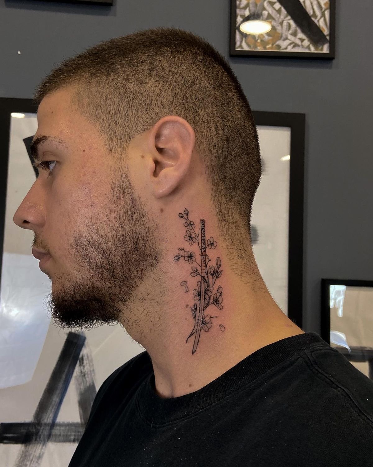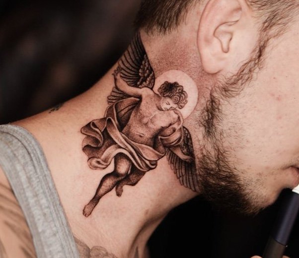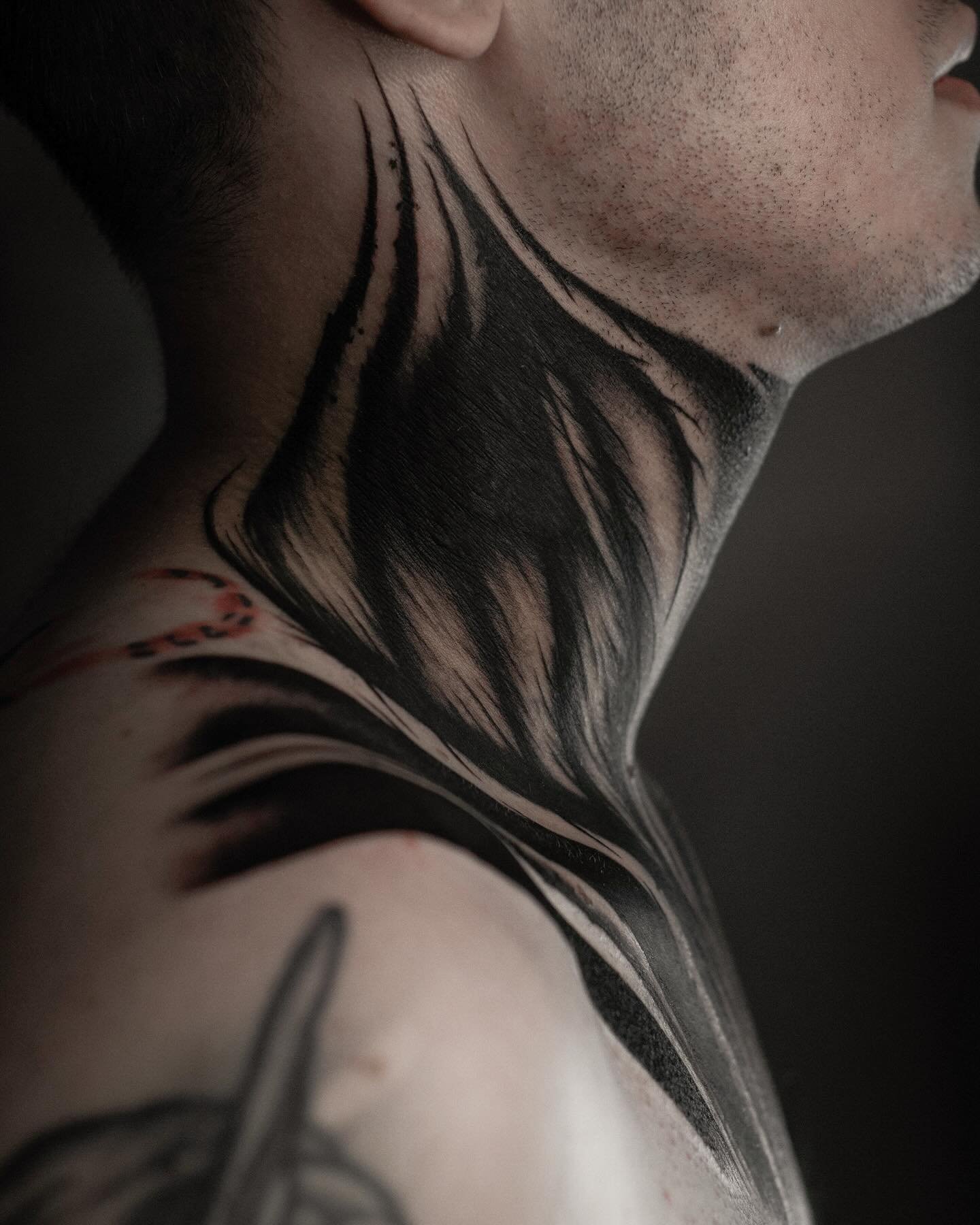 Men's neck tattoos vary in styles and designs, each carrying a certain meaning and expressing the individuality of the wearer.