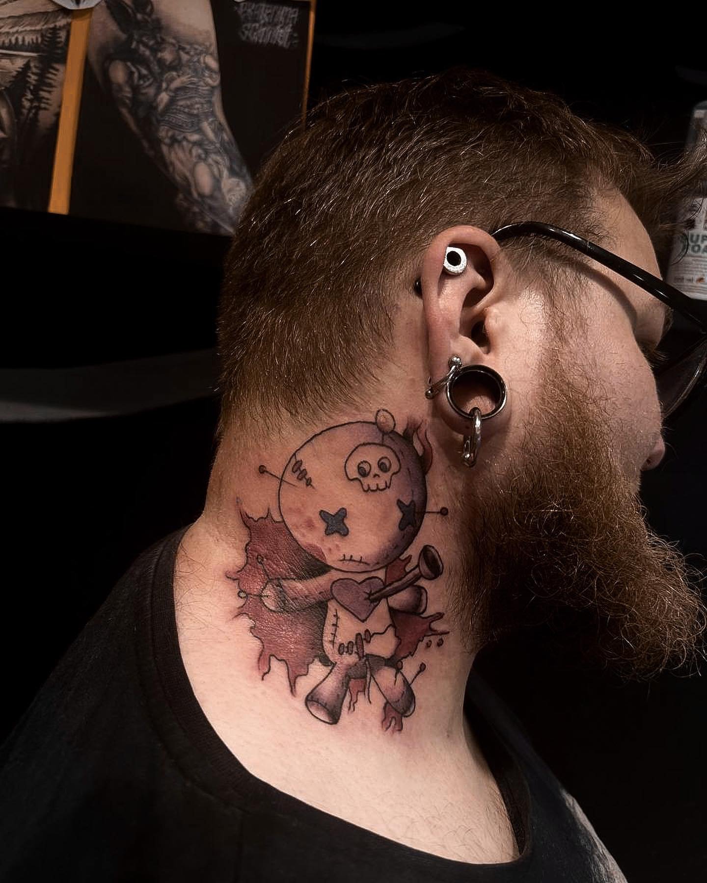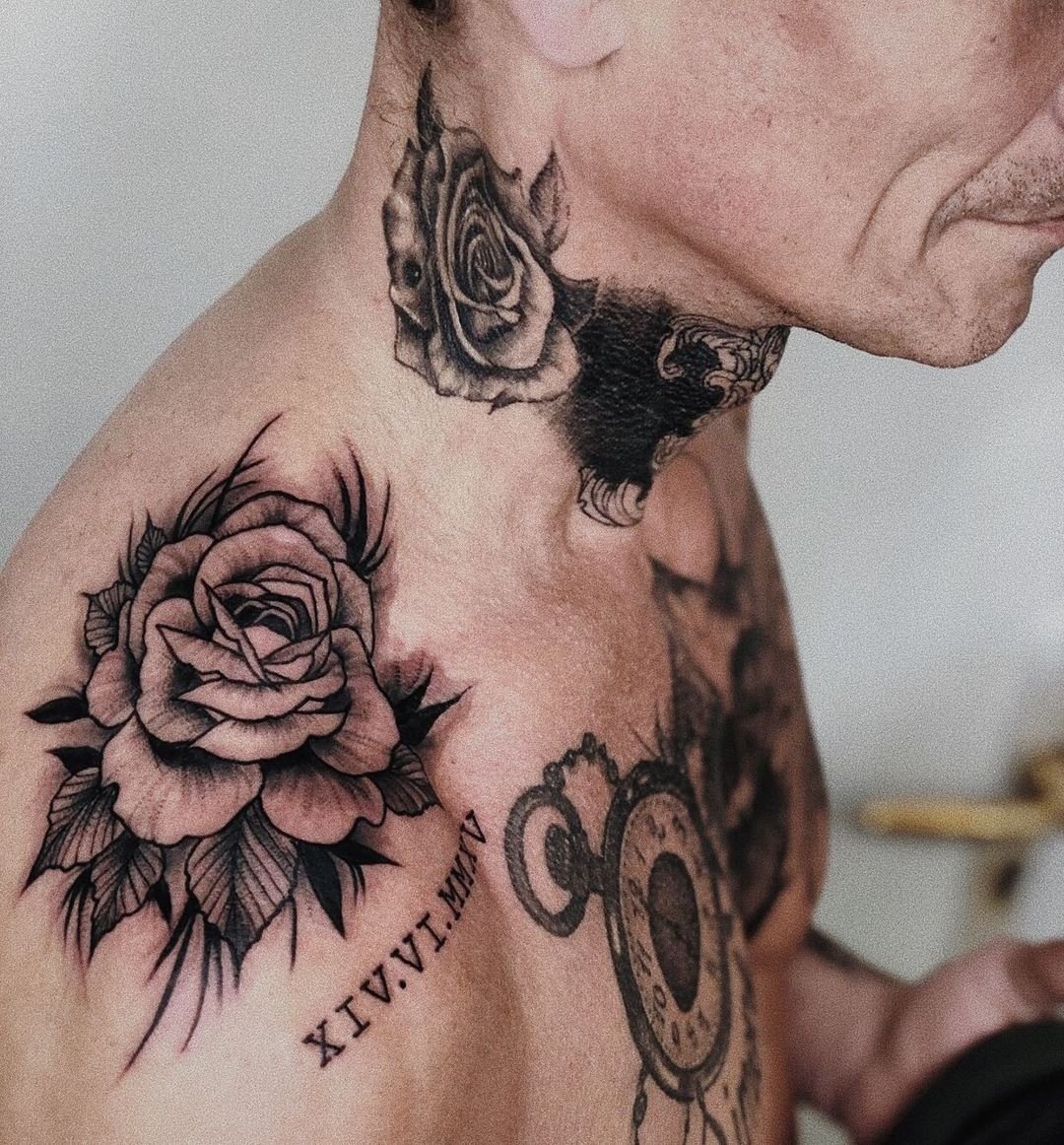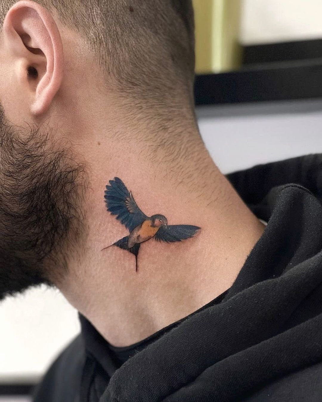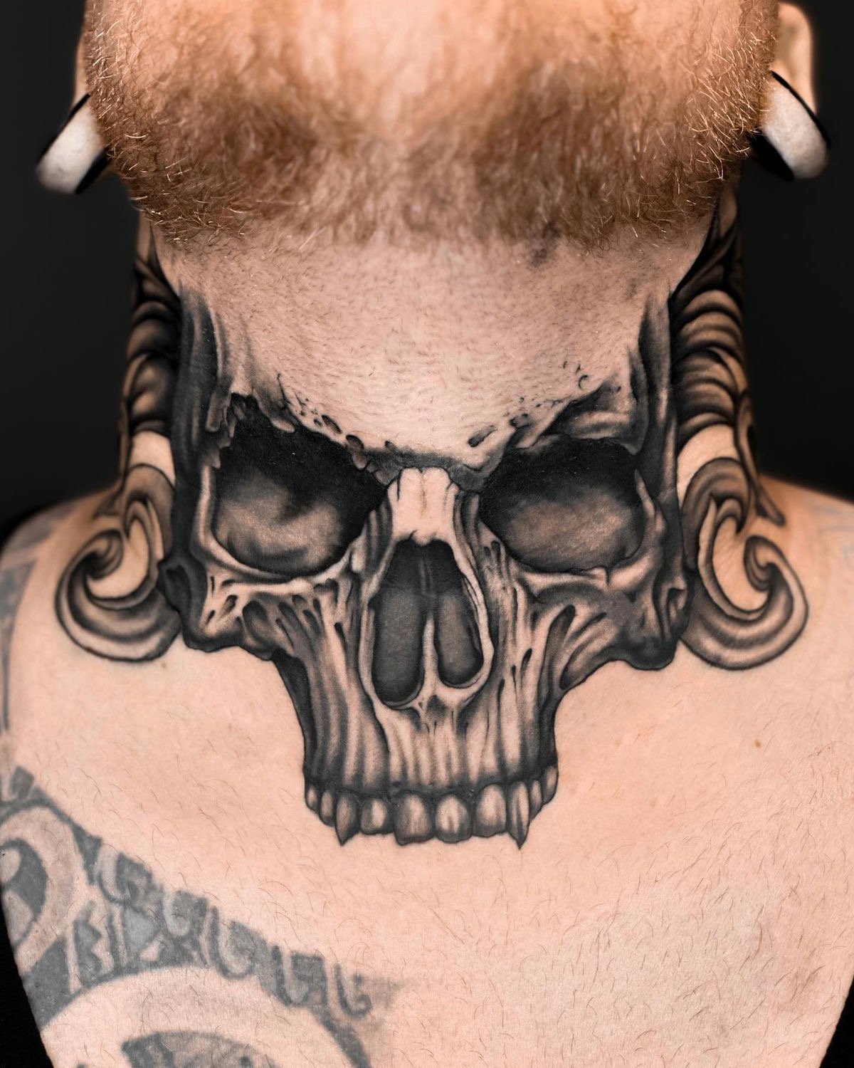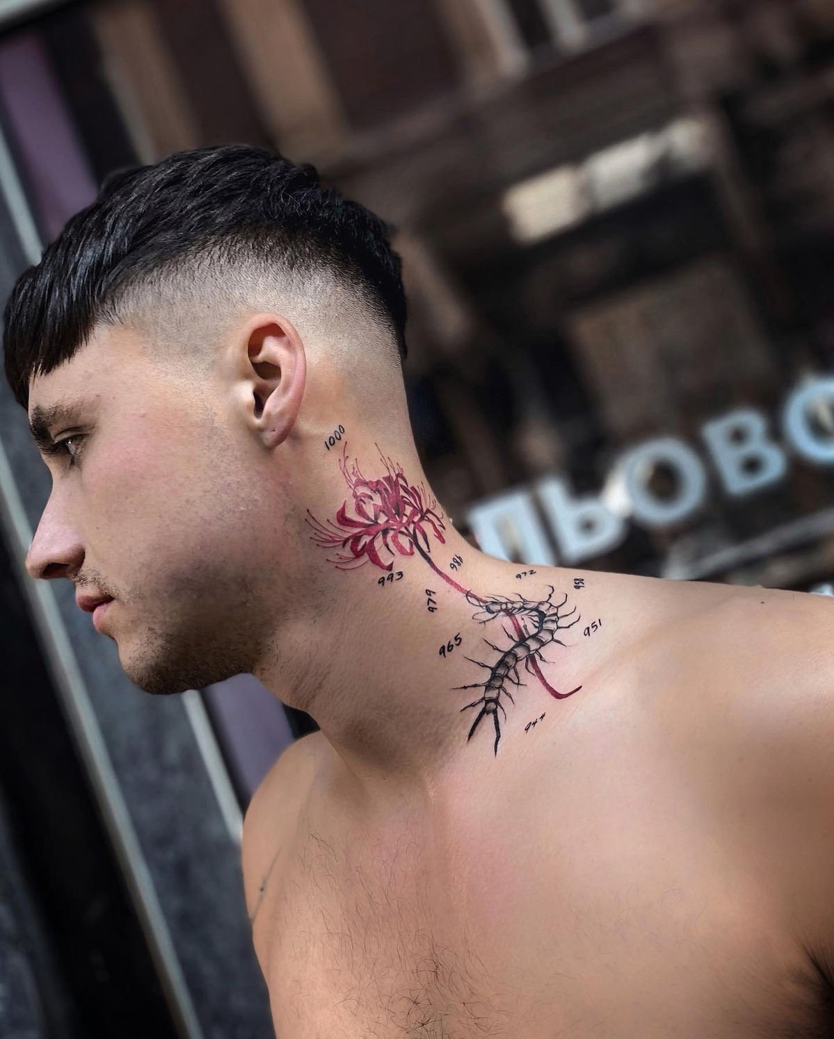 Men's neck tattoos vary in styles and designs, each carrying a certain meaning and expressing the individuality of the wearer.