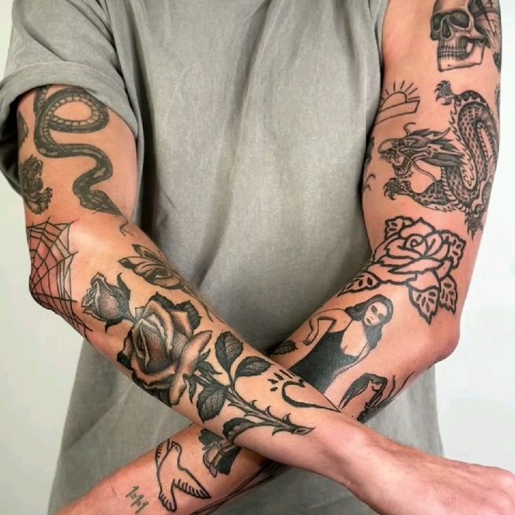 In the context of tattoos, patchwork refers to the combination of different styles, symbols, and images in one tattoo. This can include a mix of geometric shapes, floral elements, portraits, or even imagery inspired by traditional and cultural motifs.