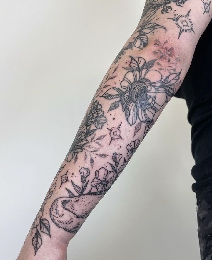 Modern patchwork tattoos often blend different styles and ideas, making them highly individualized and unique. Here are a few trends to look out for in this style: