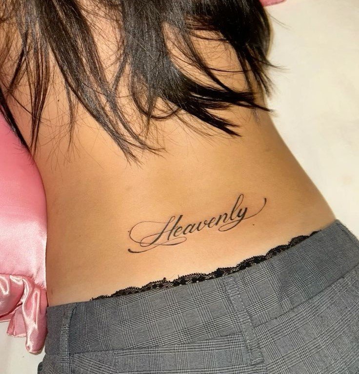 - A tramp stamp tattoo featuring a meaningful quote or phrase is an excellent way to express personal beliefs. These tattoos can be elegant and subtle, running along the lower back or placed in a more central location.