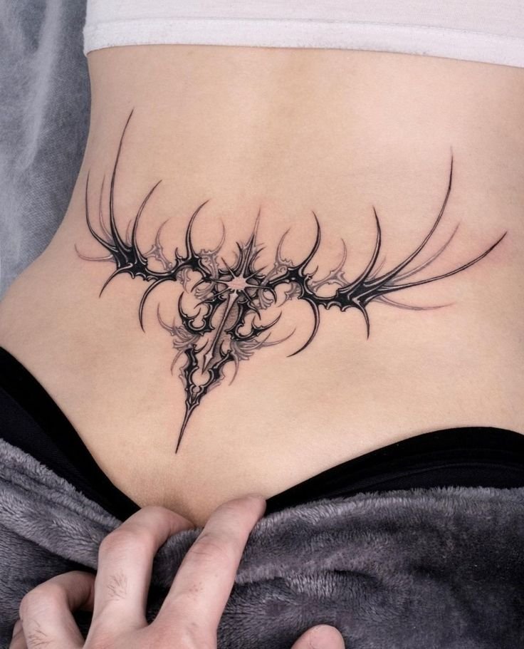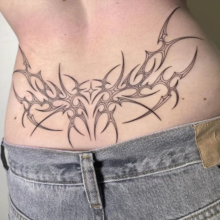 - For those who prefer a more abstract, modern style, geometric tattoos such as triangles, squares, and interlocking lines are a perfect fit for the lower back. These tattoos often have a minimalist and sophisticated vibe.