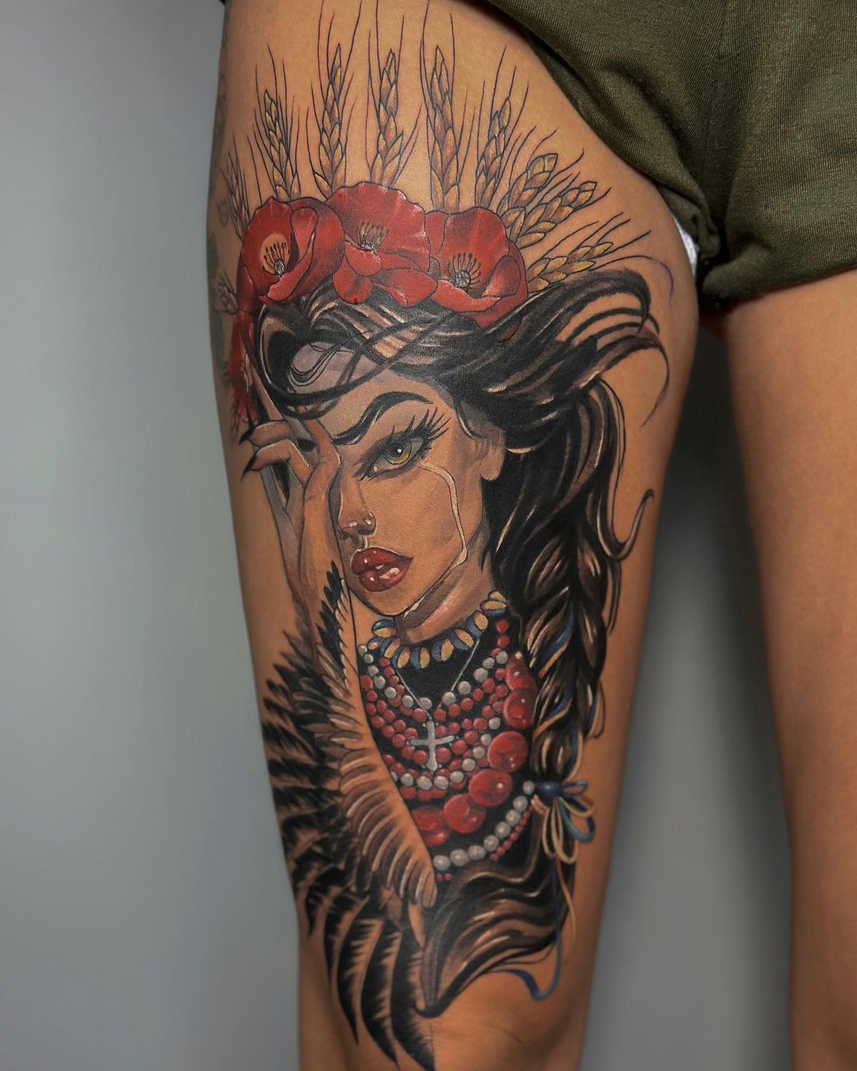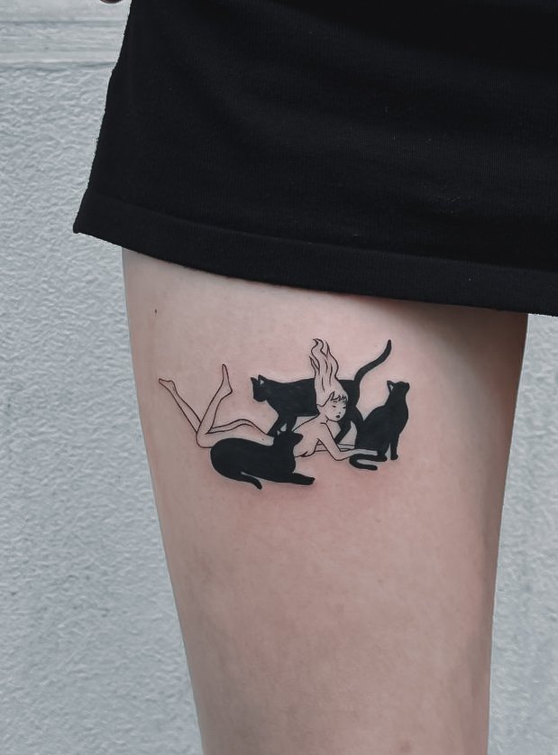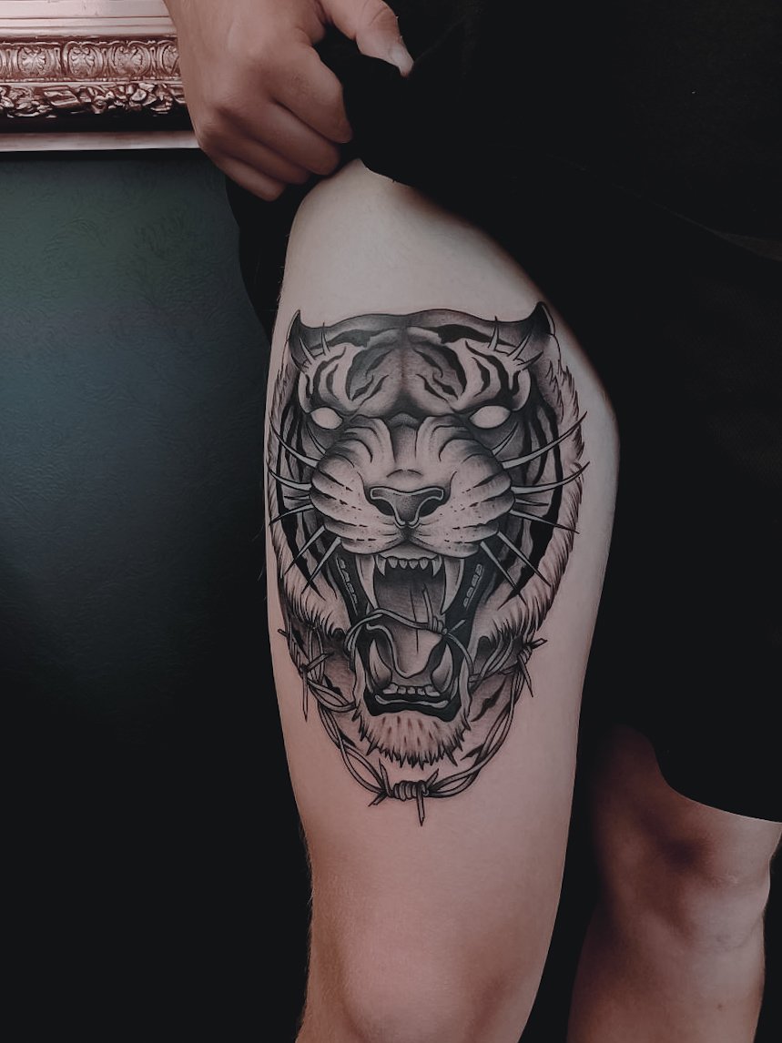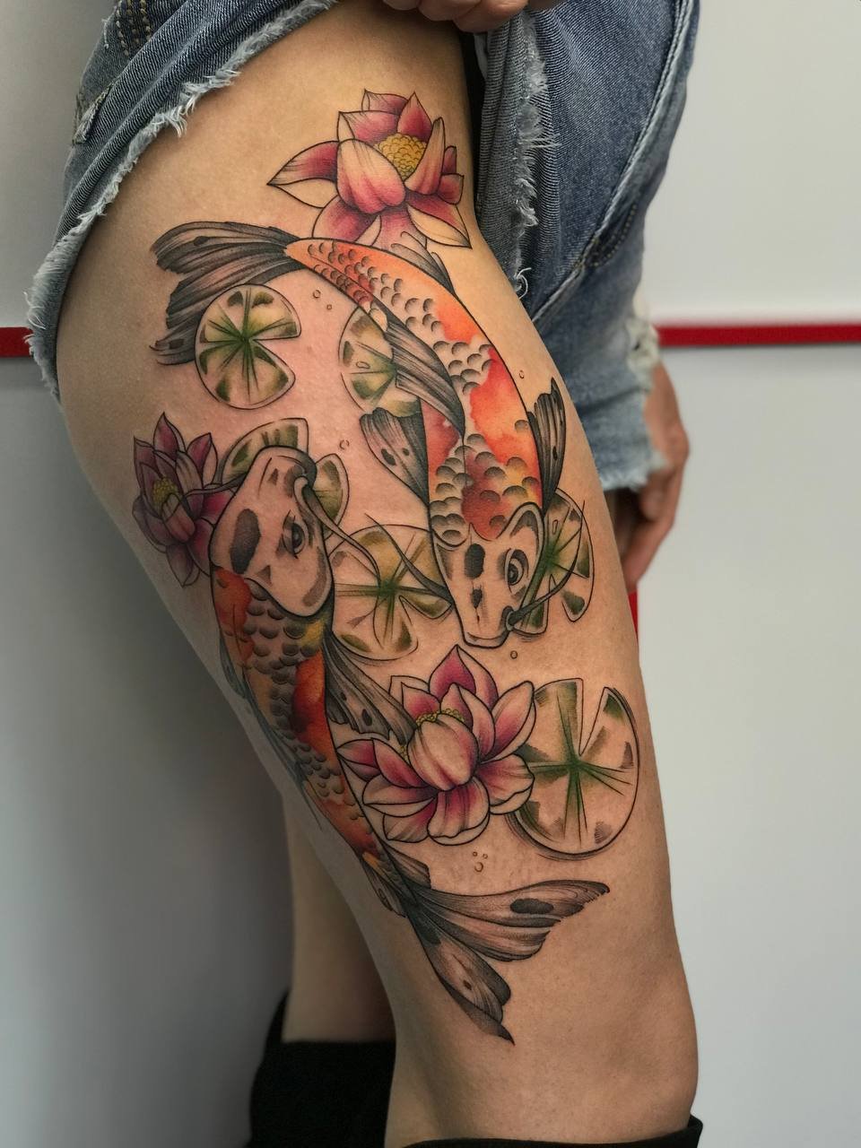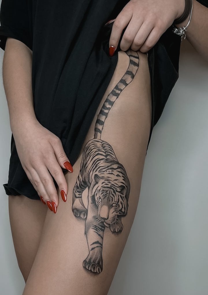These tattoos add elegance and can be easily hidden under socks or shoes. The calf, on the other hand, provides ample space for medium-sized tattoos, allowing for various patterns, landscapes, animals, or abstract designs that can accentuate muscles and create a vibrant focal point on the leg. The thigh serves as an excellent canvas for large tattoos, accommodating bold ideas such as realistic portraits, floral patterns, mythological scenes, or animal depictions. Thigh tattoos can be easily hidden under clothing or shown off in summer attire. Lastly, the foot is ideal for small and discreet tattoos, with small drawings or symbols placed here, visible only when desired. Foot tattoos are often chosen by those who want a tattoo that can be easily concealed under shoes.