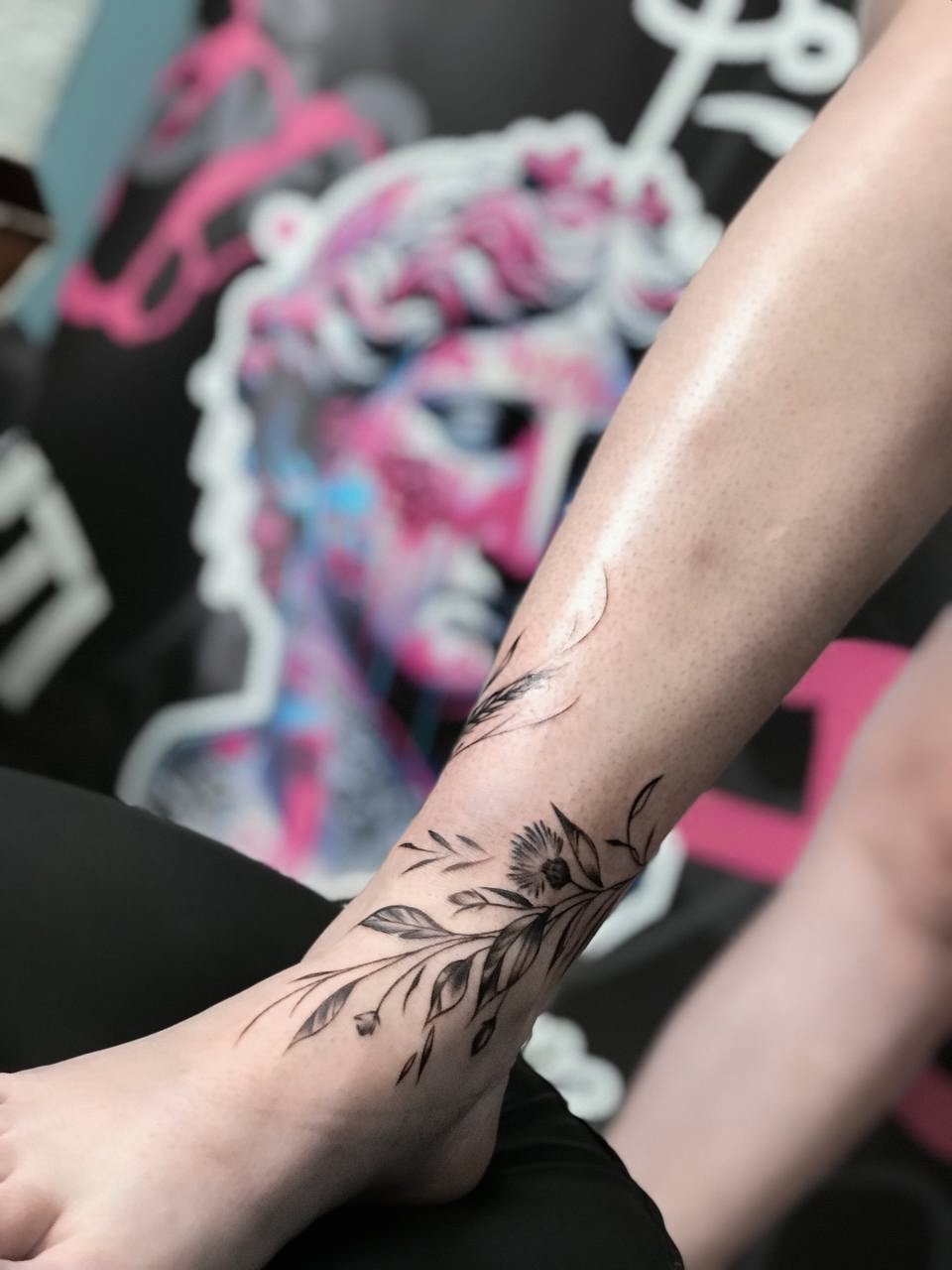 The ankle is a popular spot for small and delicate tattoos, often featuring minimalist symbols, bracelets, or small patterns.