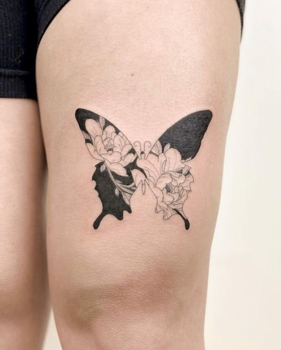 - A black-and-white butterfly tattoo offers timeless elegance, focusing on the intricate patterns of the wings and the beauty of form over color.