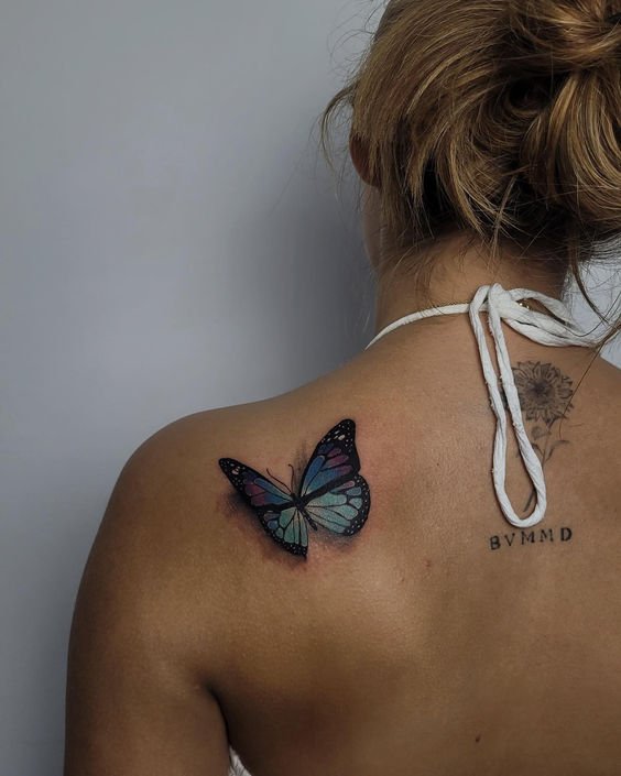 - For those who prefer a splash of color, watercolor butterfly tattoos blend hues seamlessly, mimicking the natural grace of butterfly wings with a modern artistic twist.