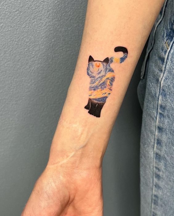 A cat tattoo can convey various meanings depending on personal preferences and interpretations: