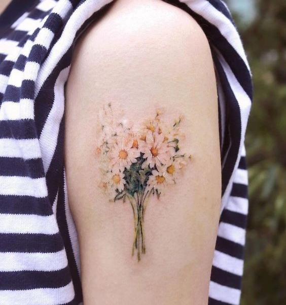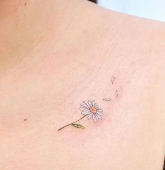 - Shoulder: A daisy tattoo on the shoulder can be either a standalone piece or part of a larger composition.