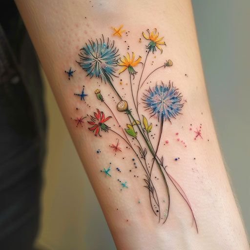 Dandelion tattoos can be created in various styles and designs to highlight their symbolism and beauty: