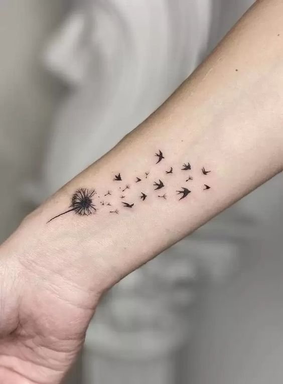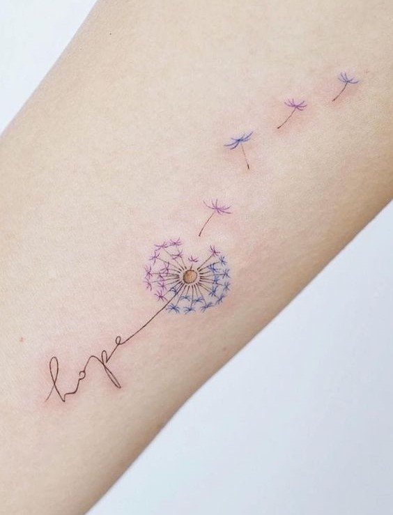 A dandelion tattoo is an elegant and symbolic choice that can represent many positive qualities, such as freedom, dreams, change, and innocence.