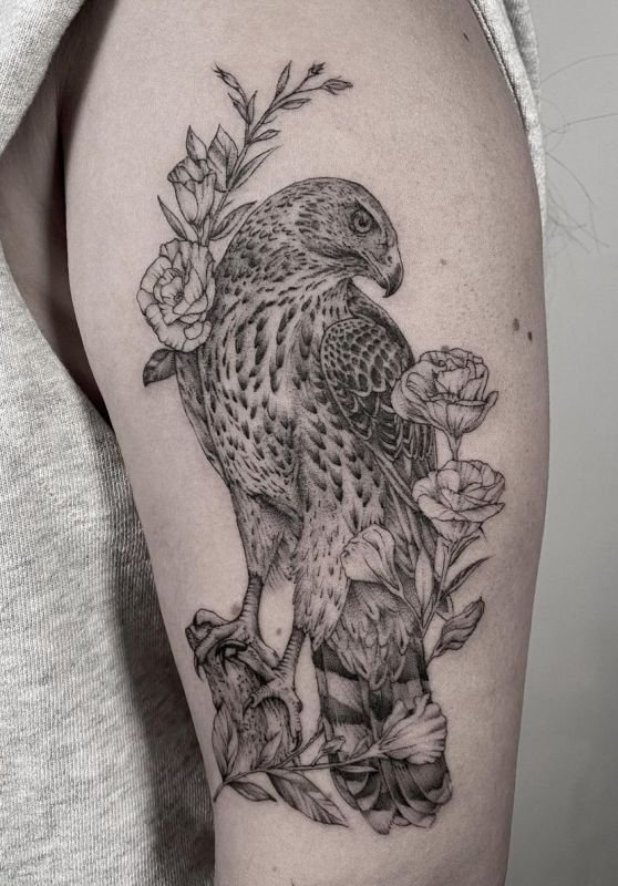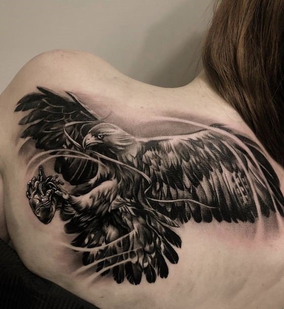 - Strength and Power: Expressing physical strength and the ability to dominate and overlook the world from the heights of its flight. Such a tattoo becomes a symbol of self-confidence and steadfastness in the face of challenges.