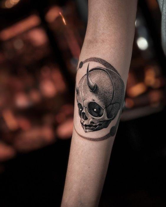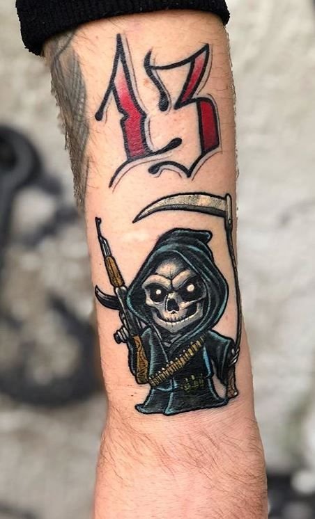Usually, it’s small, flash tattoos with a Friday the 13th twist. Here are some popular designs: