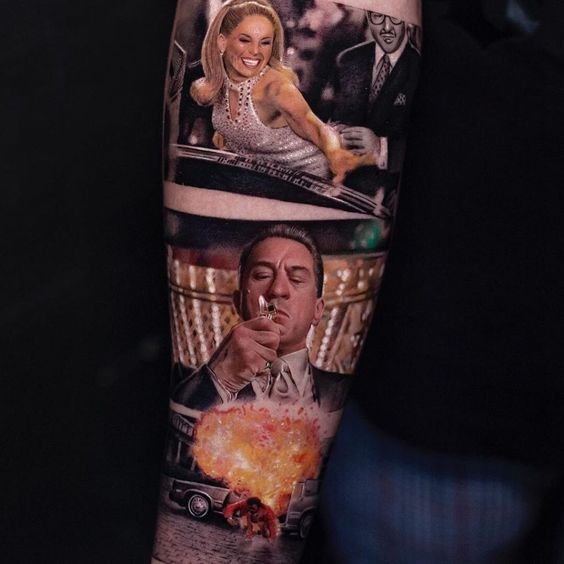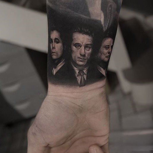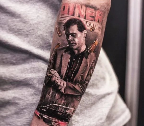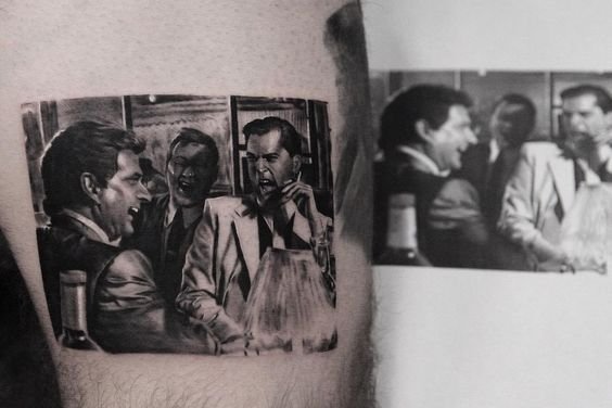 - Scenes from the Film Tattoos in the form of miniature scenes from the film can look stunning. Imagine how the legendary bar fight scene or the moment when Henry Hill first gets acquainted with mafia life would look on your skin.