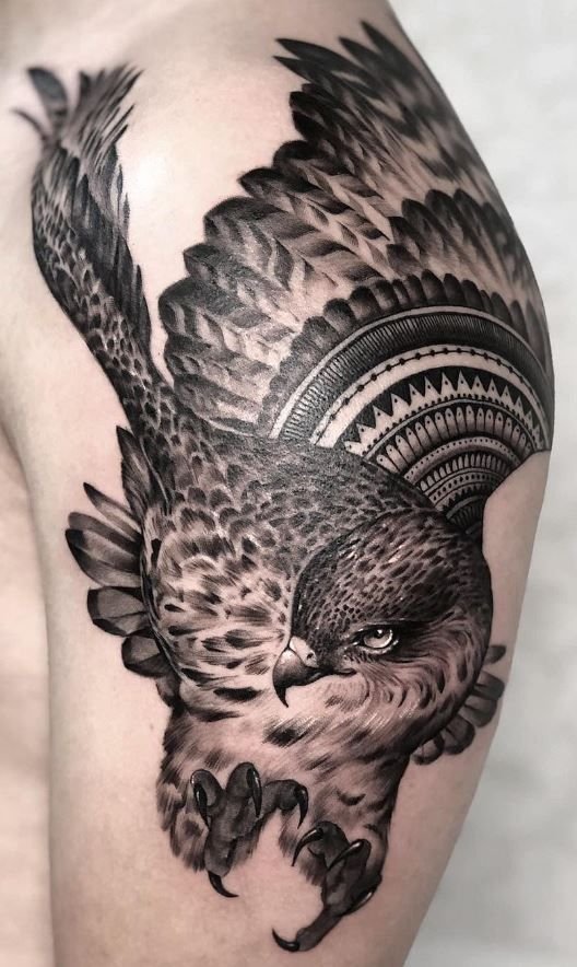 - Shoulder: An ideal place for medium-sized tattoos, where the wingspan of the hawk can be displayed.