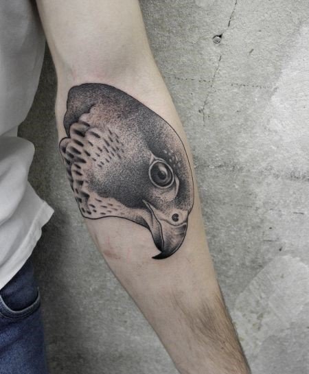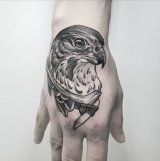 - Geometry: Hawk tattoos in a geometric style give the image a modern look and emphasize shapes and lines.