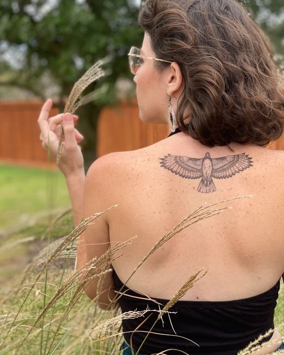 - Back: The large space allows for a detailed and large-scale depiction of a hawk.