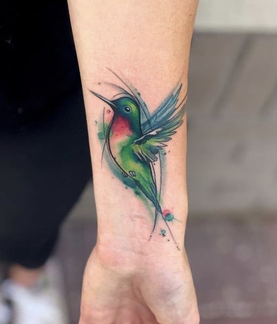 Watercolor tattoos have become incredibly popular in recent years, and it's easy to see why. This style allows for light, airy tattoos that look like actual paintings. A hummingbird in watercolor style is a vibrant and dynamic image that can combine smooth color transitions, soft lines, and paint splatter effects. This design perfectly captures the lightness and ethereal nature of the hummingbird. - Japanese Tattoo Style (Irezumi)