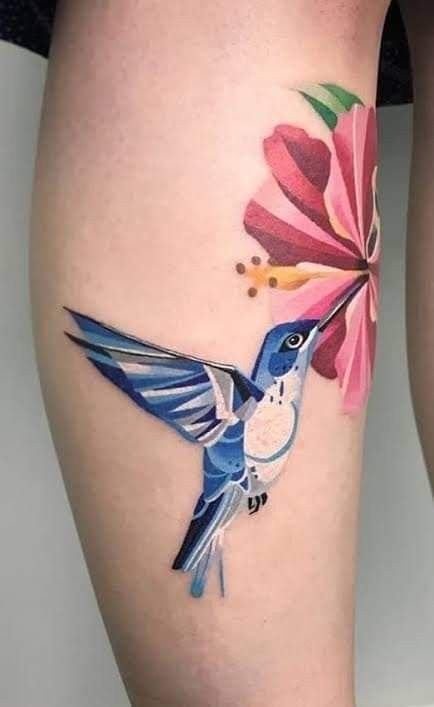 Neo-traditional tattoos combine elements of classic tattoo art with modern trends. In these designs, you can use bright, rich colors, but also play with soft shadows and smooth lines. A hummingbird tattoo in the neo-traditional style can be depicted with elements of nature, such as flowers or leaves, creating a harmonious and balanced image.