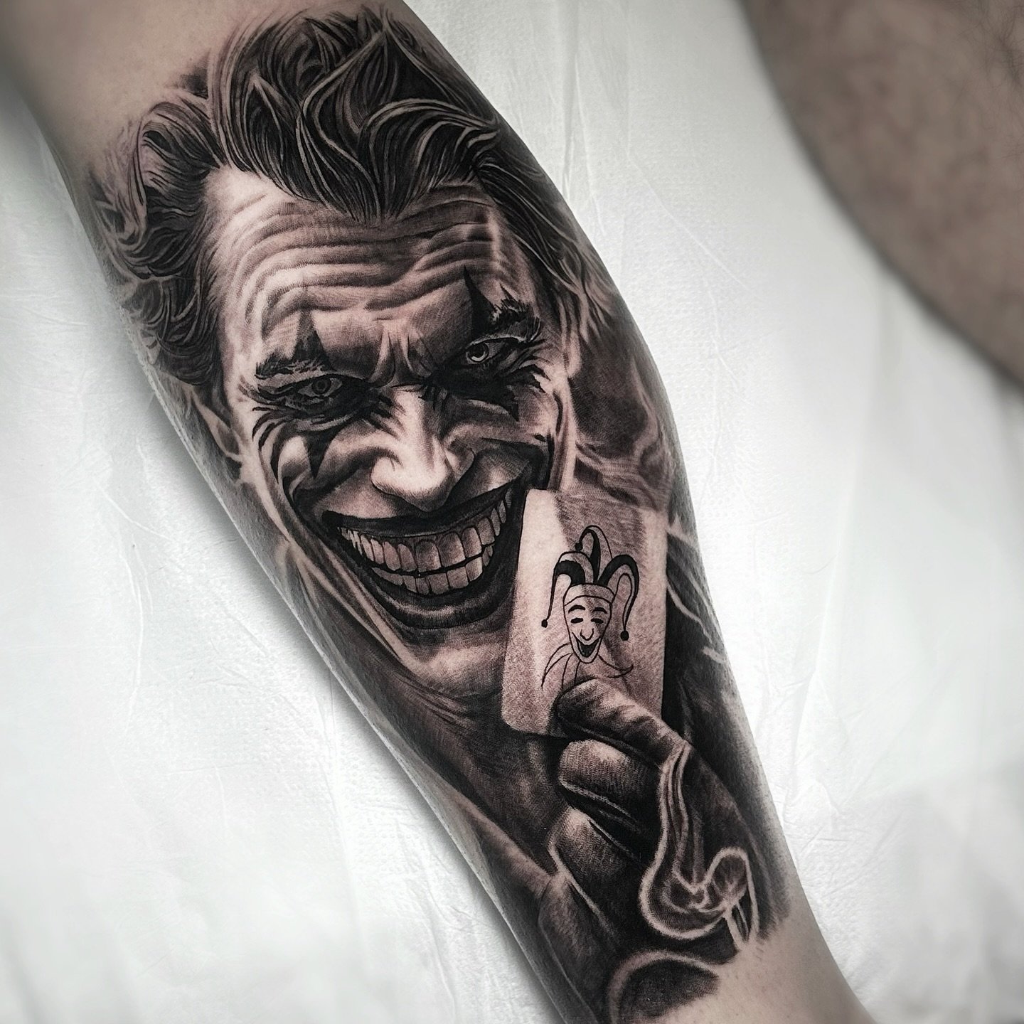 Joker tattoos can be done in various styles and techniques: