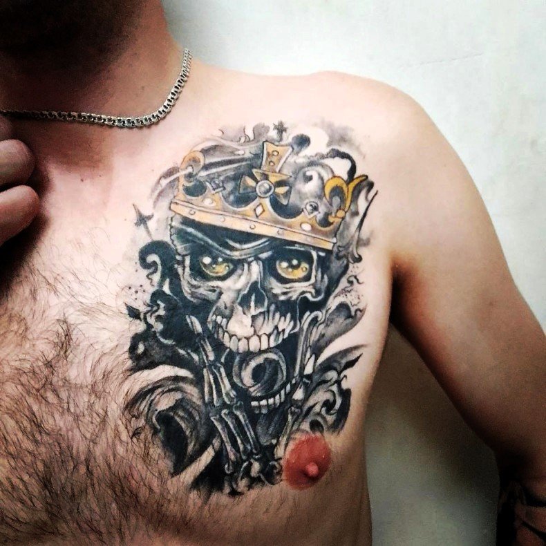 - Chest: A king tattoo on the chest highlights strength and masculinity, as well as closeness to the heart — symbolizing spiritual authority.