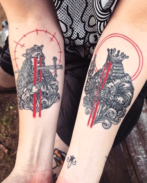 - King and Queen: Matching tattoos featuring a king and queen have become a popular choice for couples. These designs symbolize equality and balance in a relationship, where both partners play essential roles.