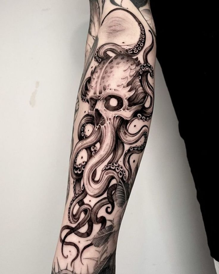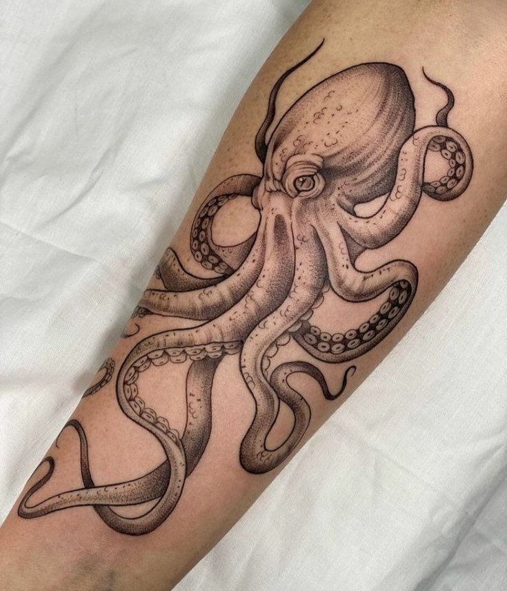 - Forearm: A tattoo on the arm can wind around the wrist or curl the tentacles down the length of the forearm, creating a sense of movement.
