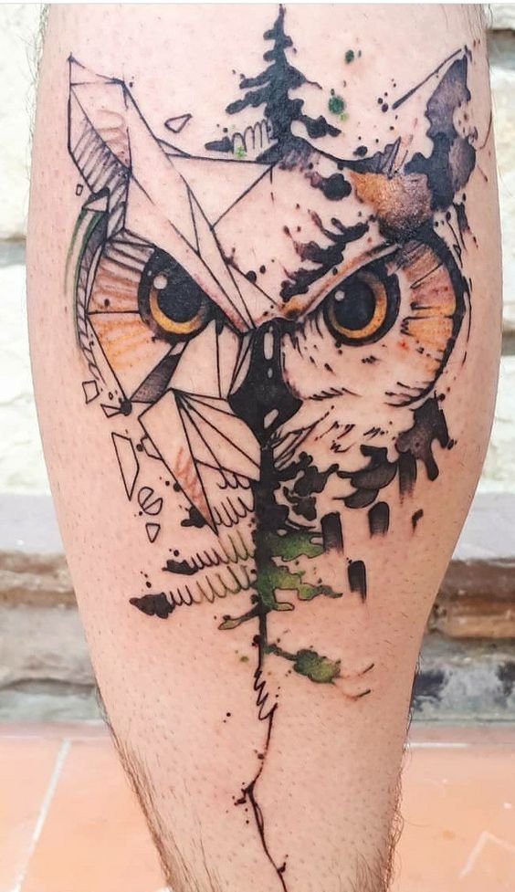 - Using geometric shapes around the owl gives the tattoo a modern look and creates an effect of symmetry and order. This style appeals to those who appreciate harmony and balance in design.