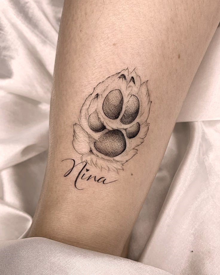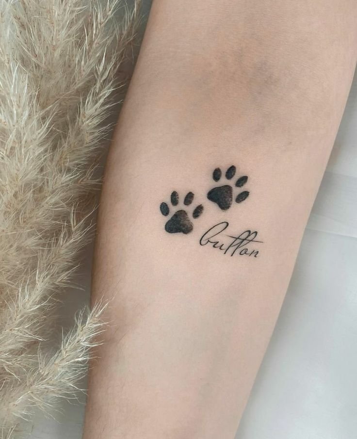 - Paw Print with Pet's Name: To immortalize your bond with your pet, you can add its name alongside the paw print. This adds a personal and sentimental touch to your tattoo.