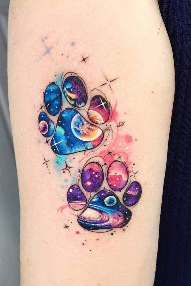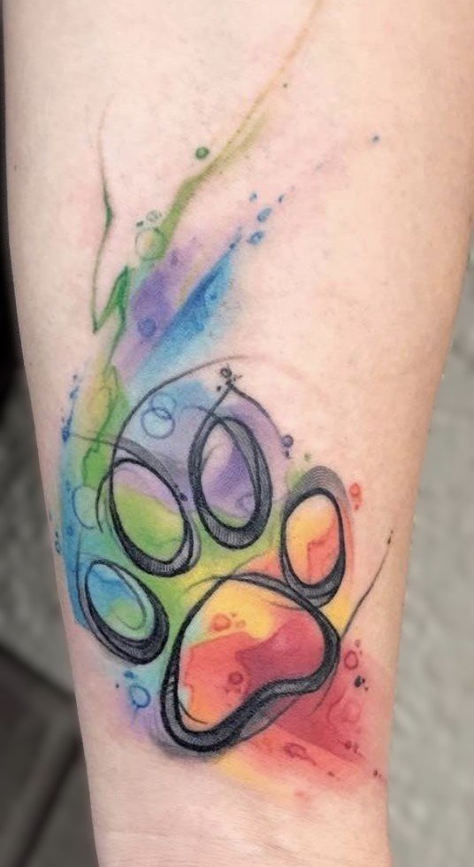 - Watercolor Paw Print: The vibrant, flowing colors of watercolor tattoos add a light and artistic feel. This style is perfect for those who want to make their paw print tattoo stand out with bold hues and smooth transitions, creating a more emotional and colorful design.