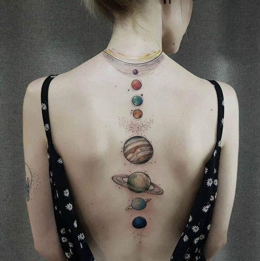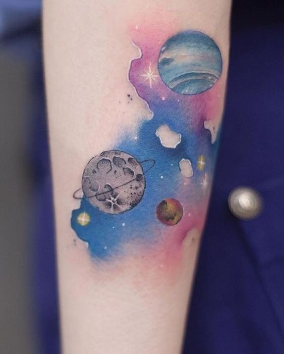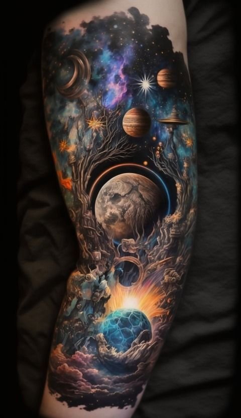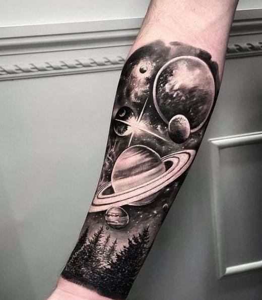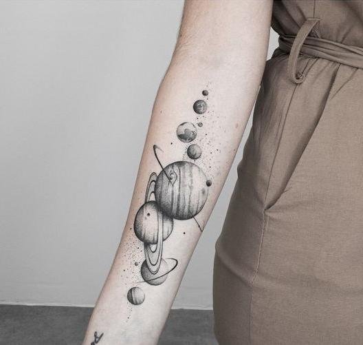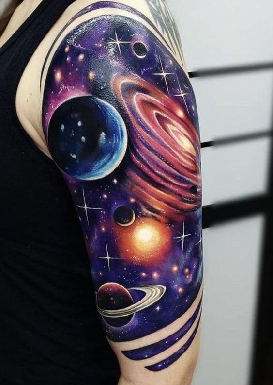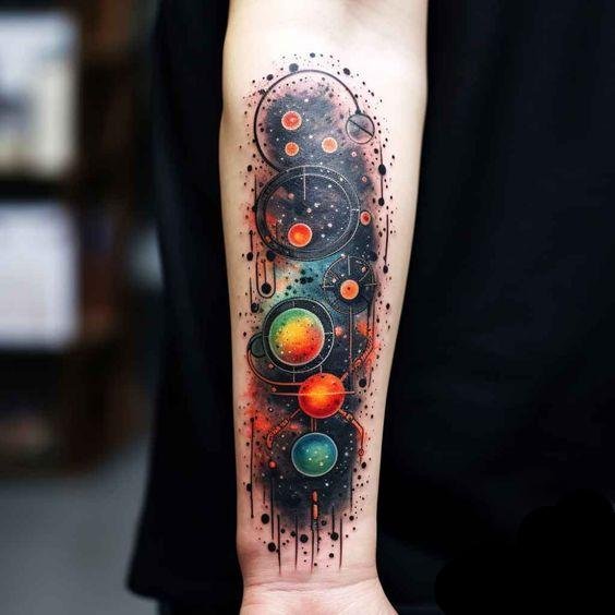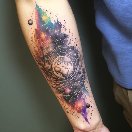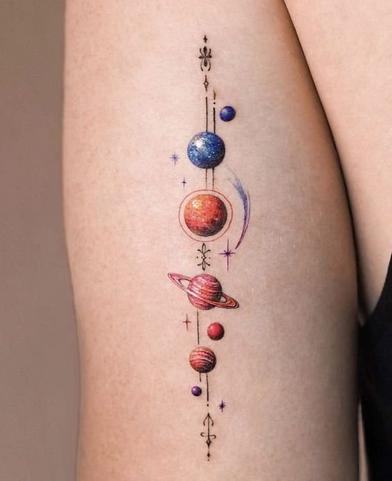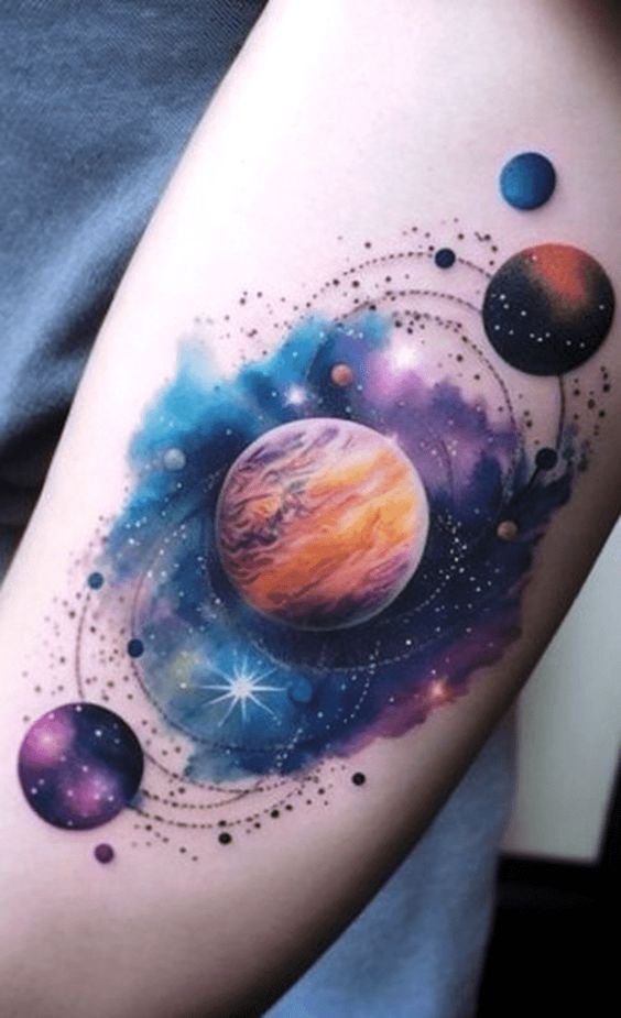 Tattoos featuring planets captivate with their mystical beauty and deep symbolism.