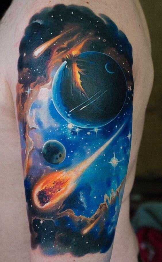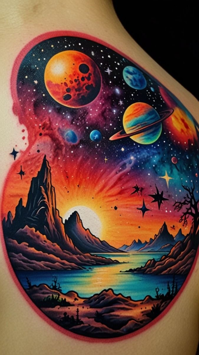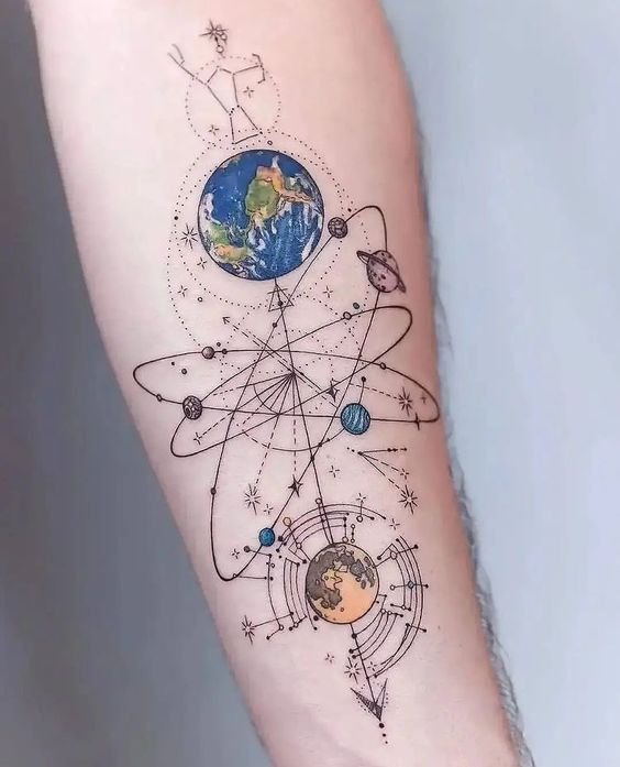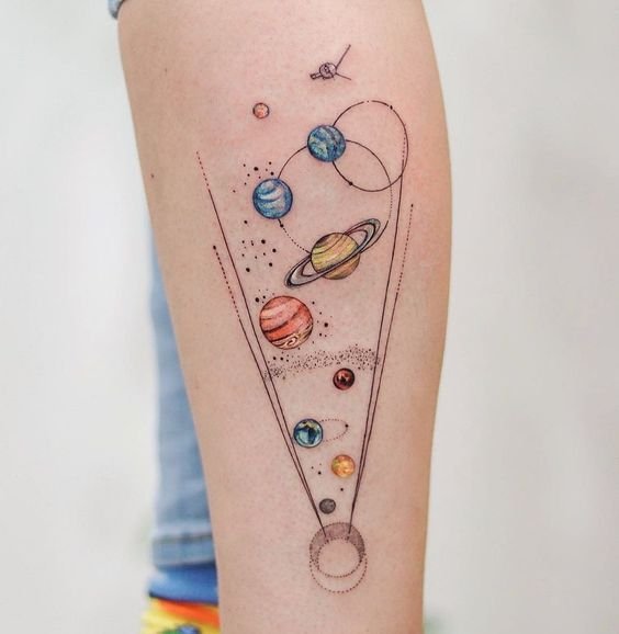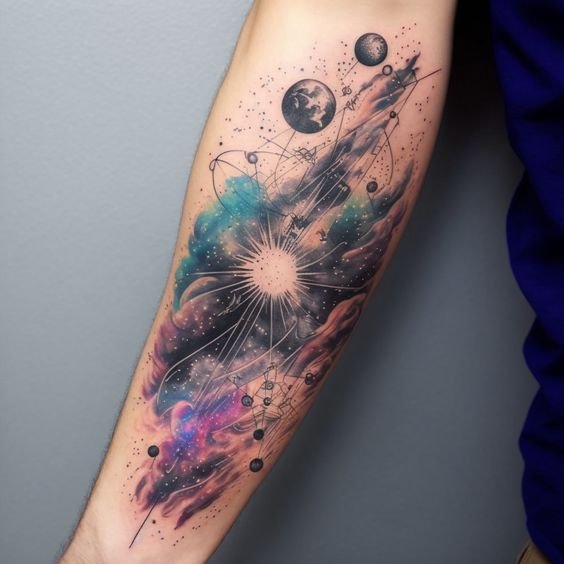 - Planets in Geometric Shapes: Combining celestial bodies with geometry gives the tattoo a modern flair.