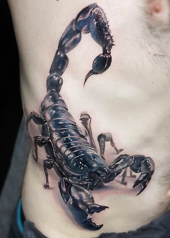 A scorpion tattoo carries numerous deep and multifaceted symbols.