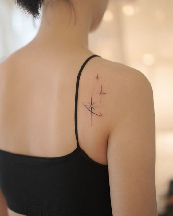 Star tattoos combined with images of the Moon, Sun, planets, galaxies, or even astronauts create unique and meaningful compositions, revealing a love for space exploration, dreams, and the pursuit of the unknown. - Personalized Constellations: Individual Star Maps.