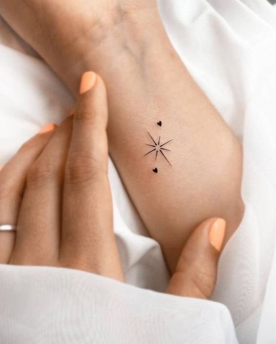 A small star tattoo behind the ear may symbolize an inner voice, intuition, or someone's whisper from the past. This is a hidden but very personal place for those who want to have an unobtrusive but meaningful symbol close to them. - On the wrist: Under the Sign of Destiny.