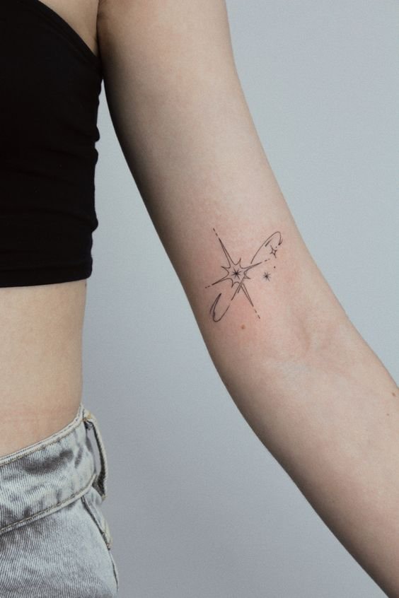 Tattoos with navigational stars, commonly found among sailors and travelers, symbolize the search for and finding one's way in life. The design can be done in traditional nautical style or modern interpretations, often combined with other maritime symbols. - Radiance of Eternity: Shooting Stars and Meteors.