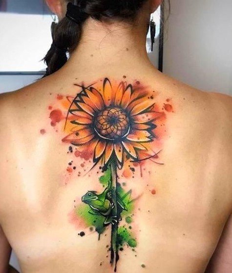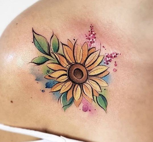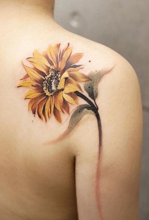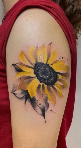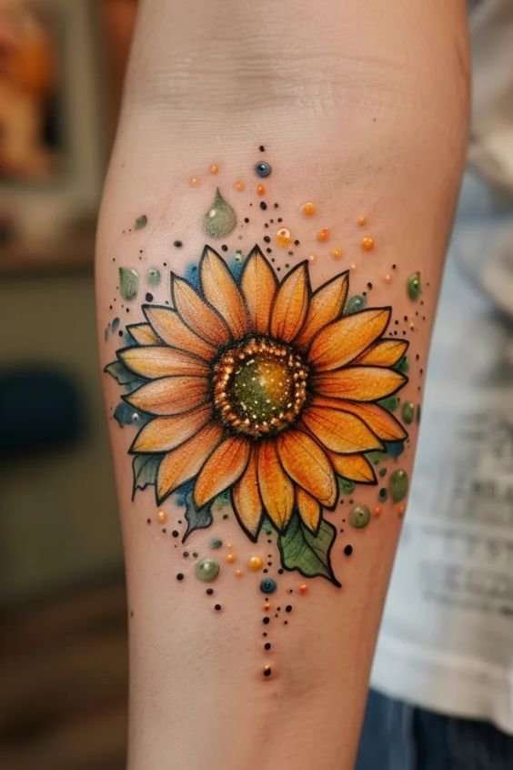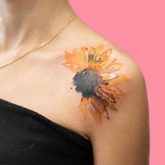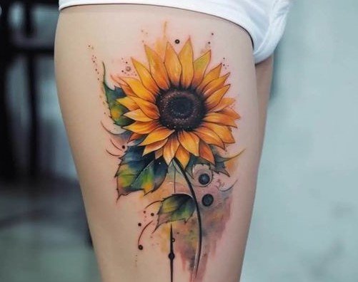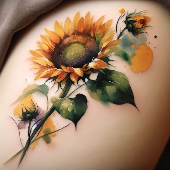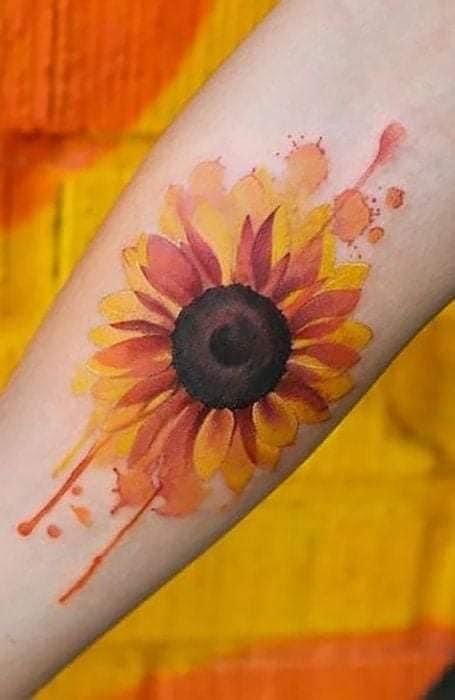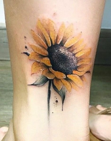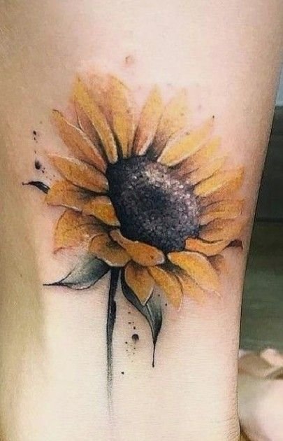 - Watercolor: Watercolor tattoo style adds a light and bright touch to the sunflower image, using smooth color transitions and mimicking the effect of watercolor paints.