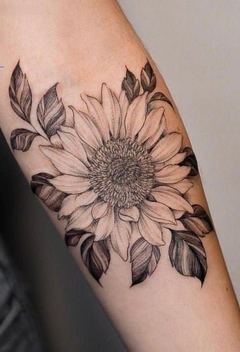 A sunflower tattoo is a bright and meaningful symbol that captures attention with its positive and sunny demeanor.