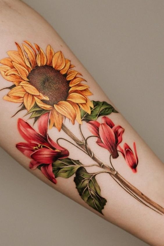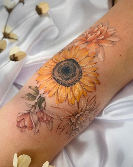 Sunflowers are associated with the sun, warmth, and joy, making them a popular choice among tattoo enthusiasts who seek to express the cheerful and optimistic aspects of their personality.