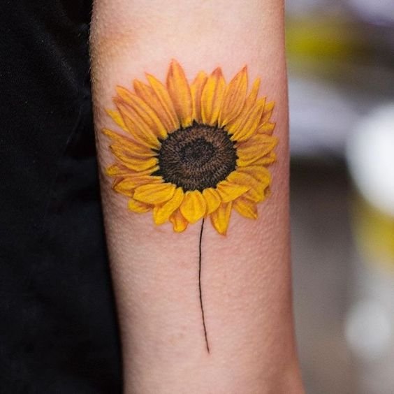 A sunflower tattoo is a bright and positive choice that can symbolize many positive qualities such as joy, devotion, growth, and resilience.