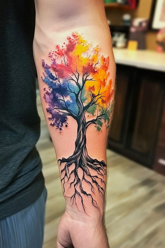 - Watercolor Techniques. Watercolor tattoos employ vibrant colors and fluid brushstrokes to create a dynamic and expressive piece. This style imparts a sense of movement and energy, making the Tree of Life appear as a living, breathing entity on your skin.